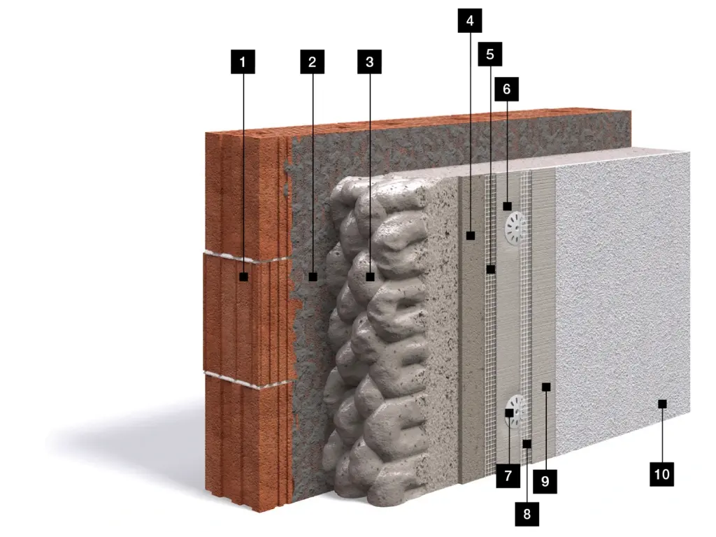 3. FOME® Dämmputz: Mehrlagige Dämmputz-Schicht (60 bis 350 mm)
